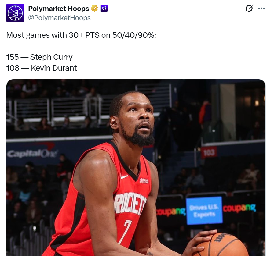 同时本场比赛杜兰特效率再度达到“180俱乐部”标准,即三项命中率至少达到50/40/90%。